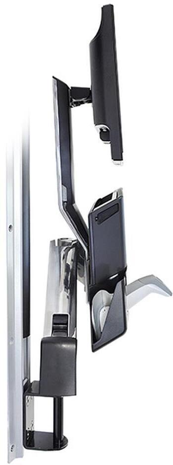 Ergotron StyleView® Sit-Stand Combo Arm with Worksurface (polished aluminum) 45-260-026 . Kombinované rameno StyleView Sit-Stand drží monitor, čtečku čárových kódů, klávesnice, opěrka zápěstí a myš na stejném rameni, což umožňuje snadné ovládání jediným pohybem výškové nastavení.